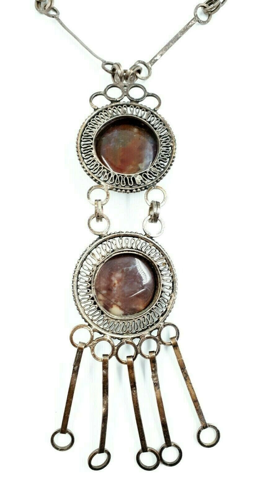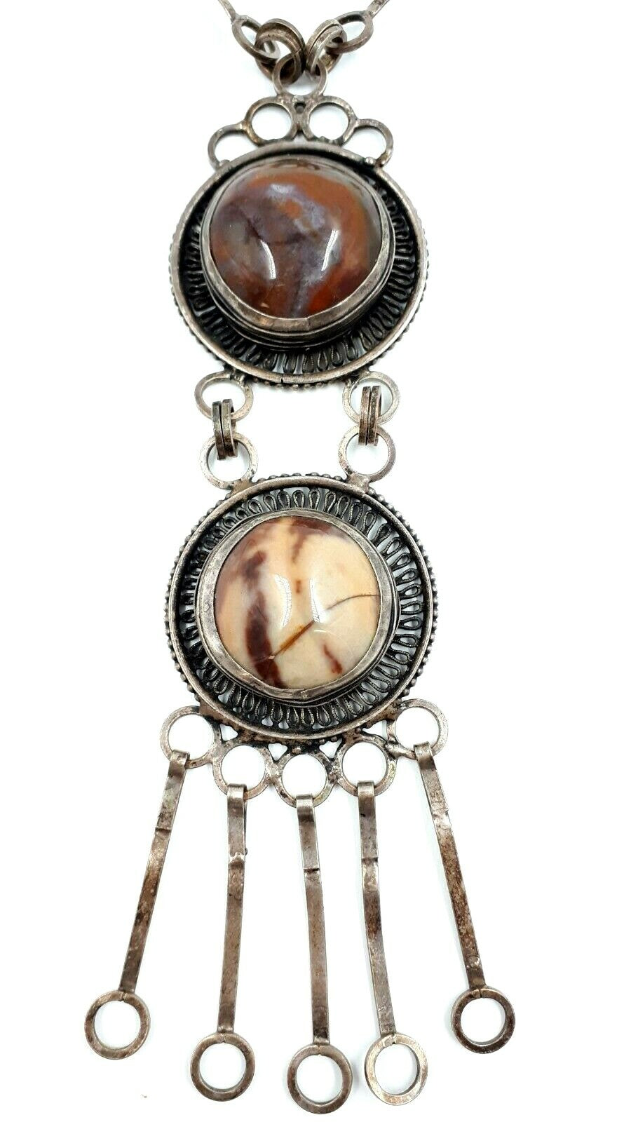 antiker XL Trachtenschmuck mit 2 großen Jaspis-Cabochon, gefasst in Juwelierdraht verbunden an 2 Gliedern, Kette bestehend aus 10 Gliedern, Material wohl Silber, schöner Allgemeinzustand