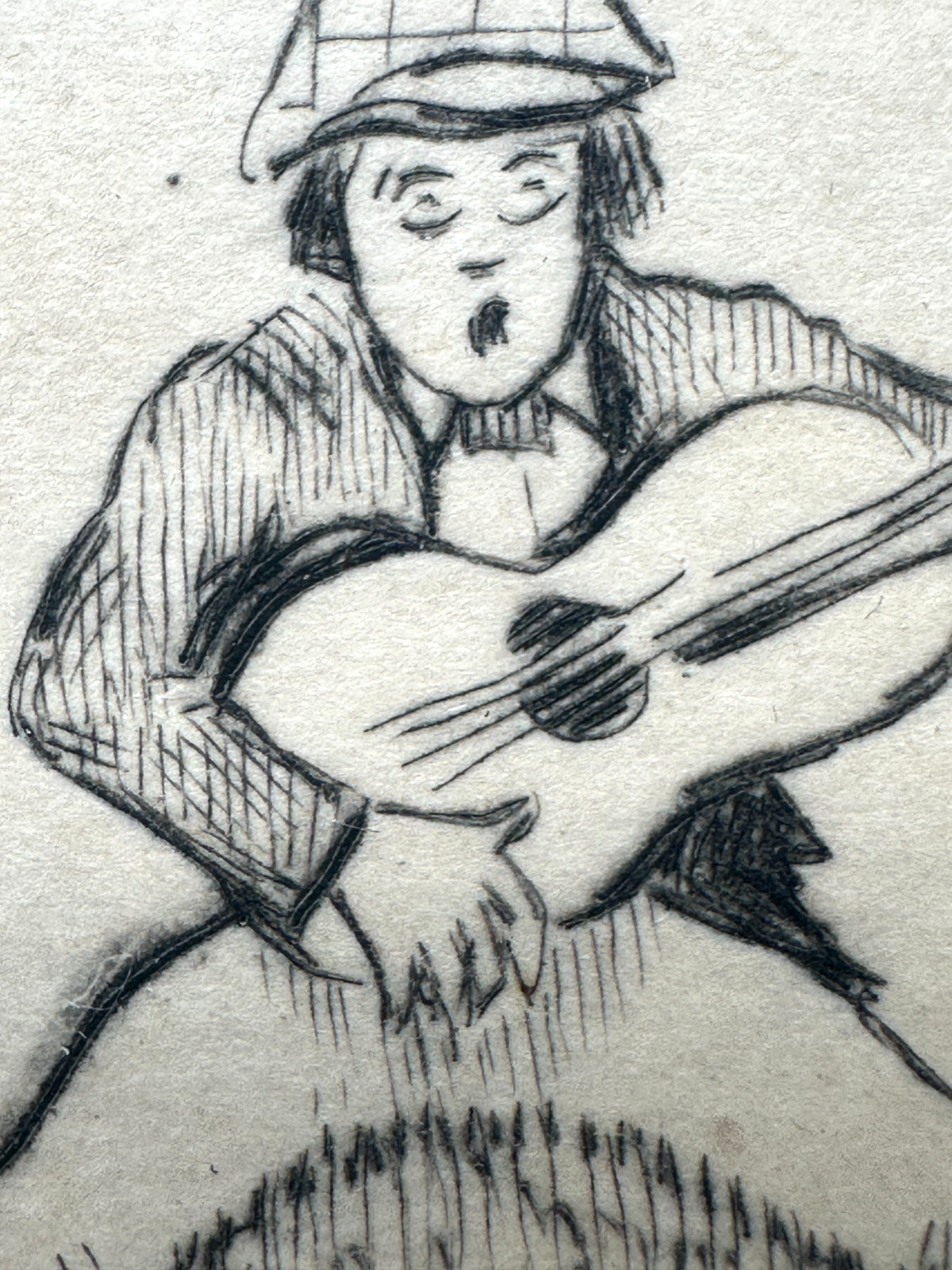 Wenzel Wobatzek - Orig.-Radierung - Musizierender Mann unter Baum - Signiert