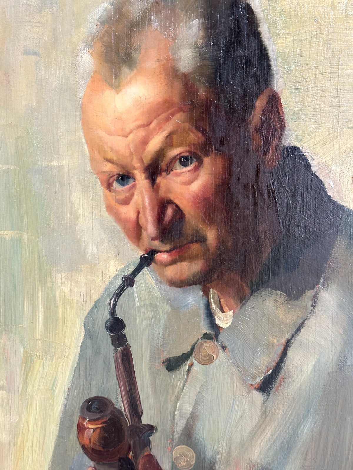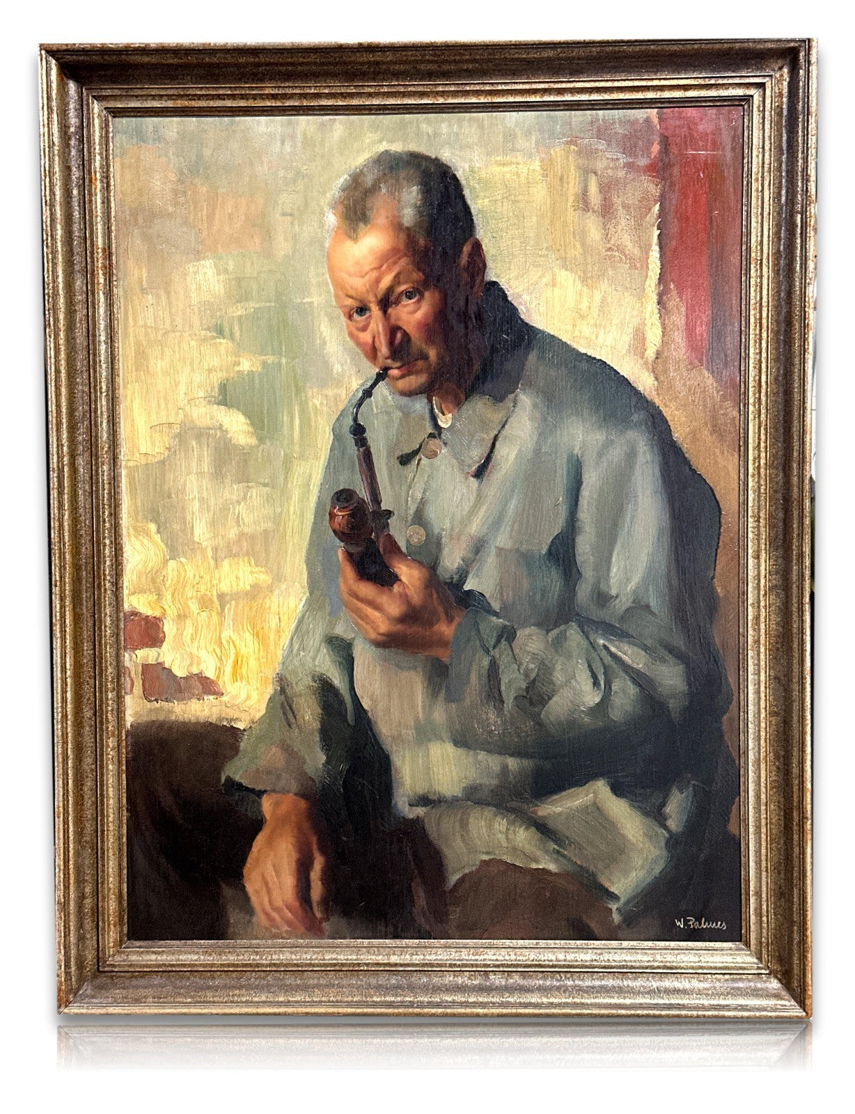 Wilhelm Palmes – Charakterkopf mit Pfeife – Ölbild um 1950 – Männerportrait
